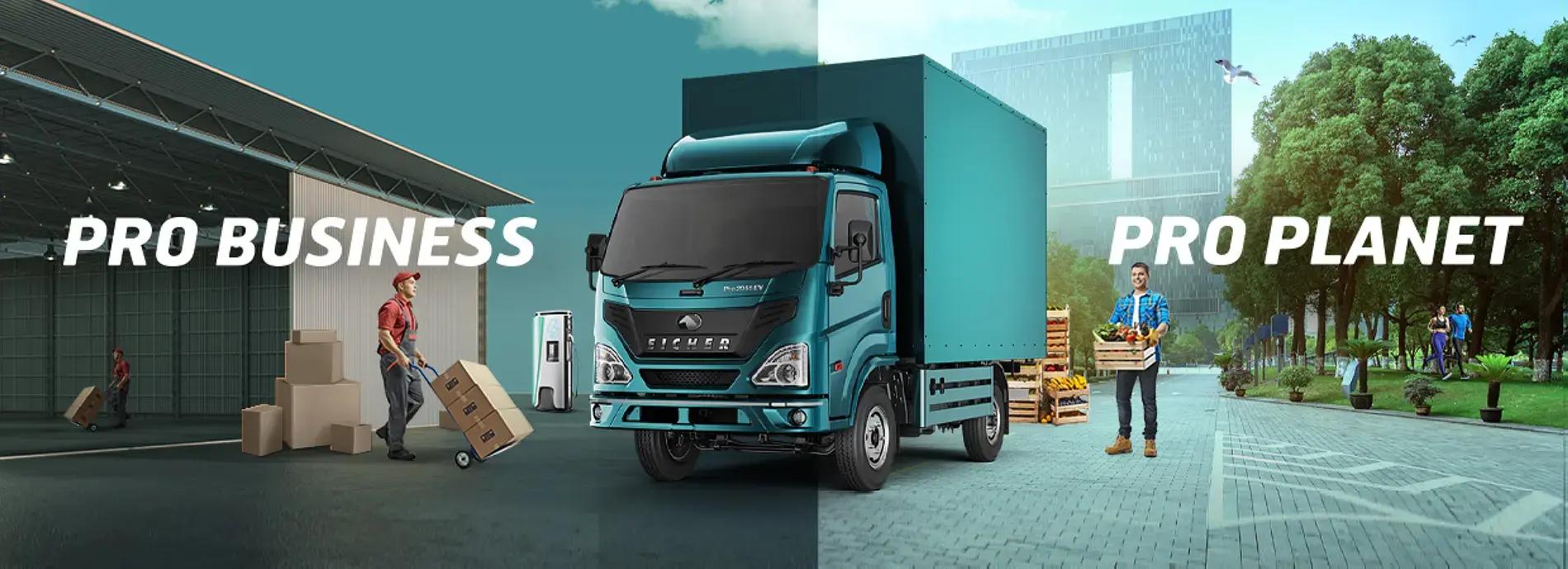 The new Eicher Pro 2055 EV is an efficient and smart innovation that plans to transform the face of logistics. It has been designed to perform in the e-commerce, FMCG and P&C segment with the profitability of the business in mind. Eicher's ground-up technology has integrated high-energy storing batteries, reliable all-electric driveline with unparallel driver safety and comfort features to create this new-gen, efficient, clean and silent logistic solution.